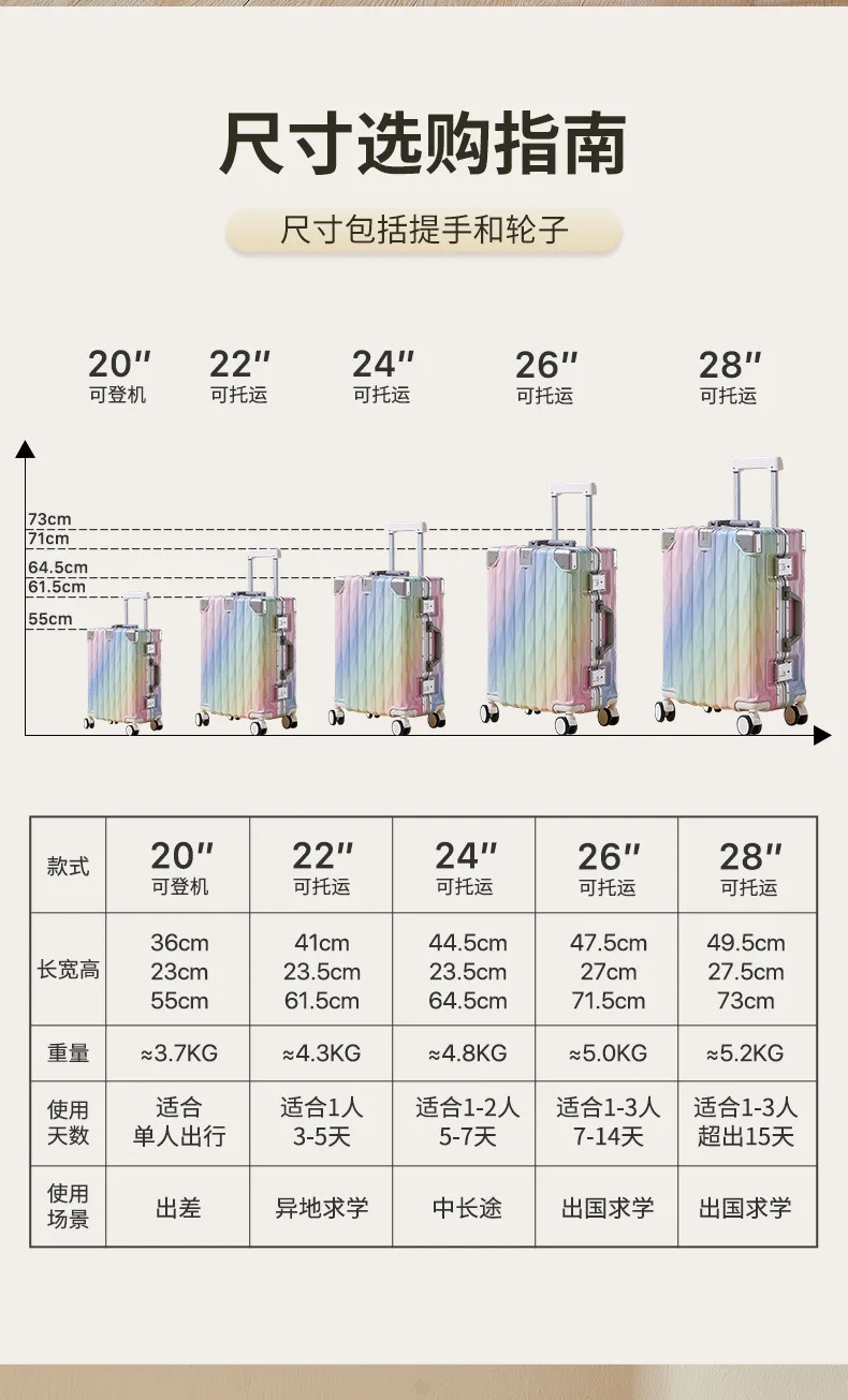 • 20 inch luggage case, new large capacity suitcase, 24 aluminum frame travel case, durable password box