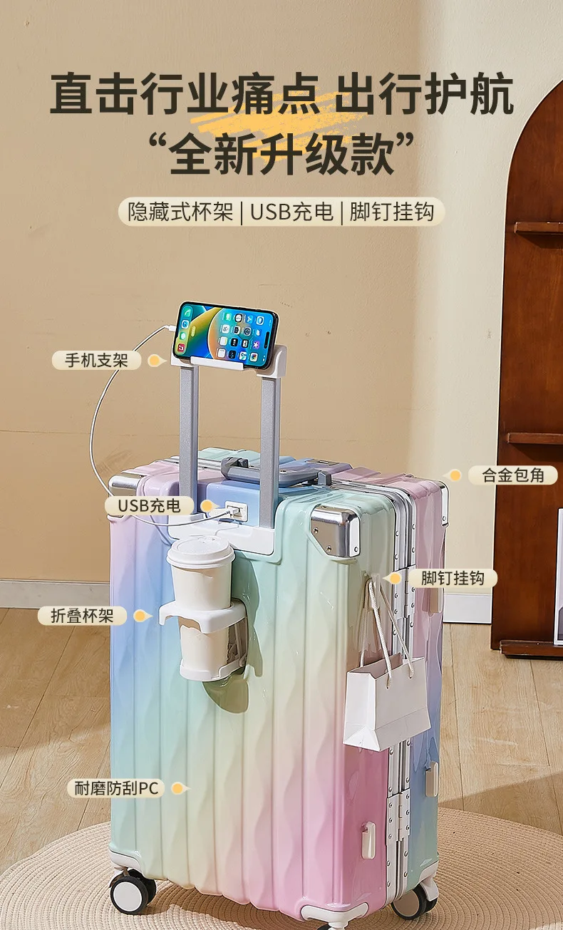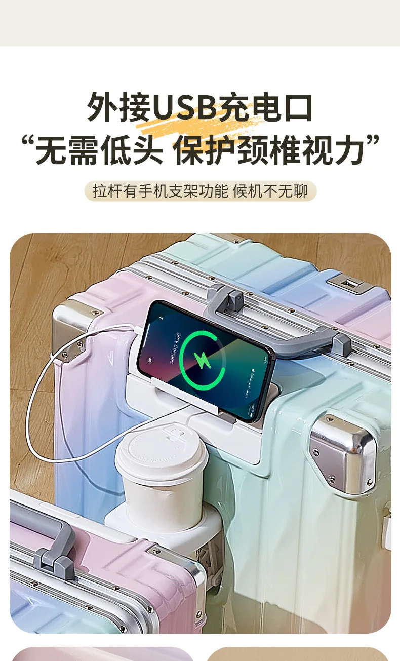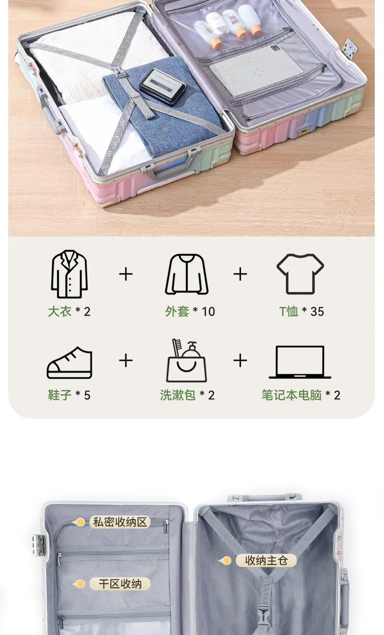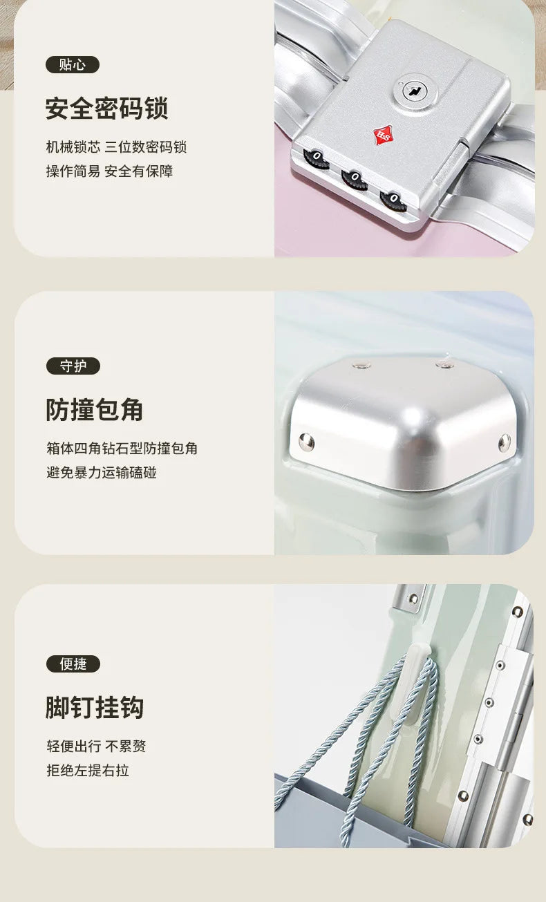 20 inch luggage case, new large capacity suitcase, 24 aluminum frame travel case, durable password box