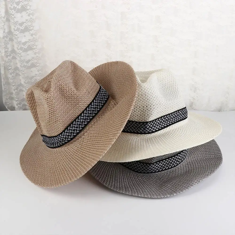 Fisherman Hat Cool Beach Dad Bowler Hat Bohemia Style Male Solid Color Panama Hat Old Man Sun Hat Middle-aged Men Straw Hat