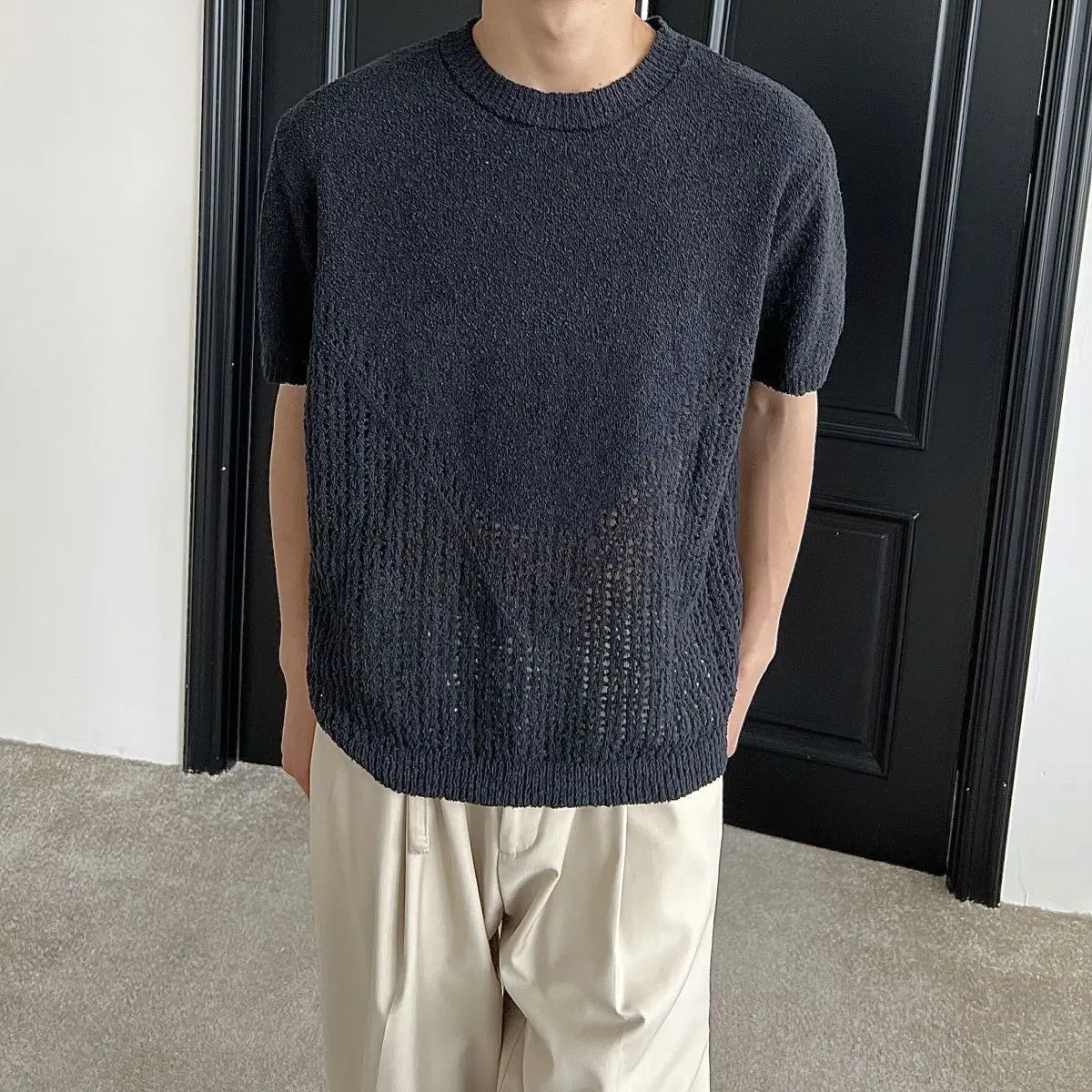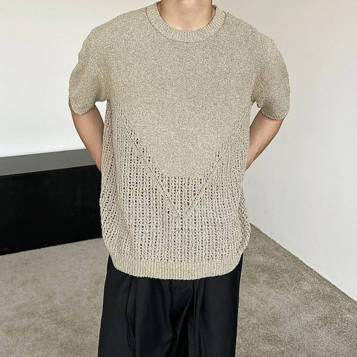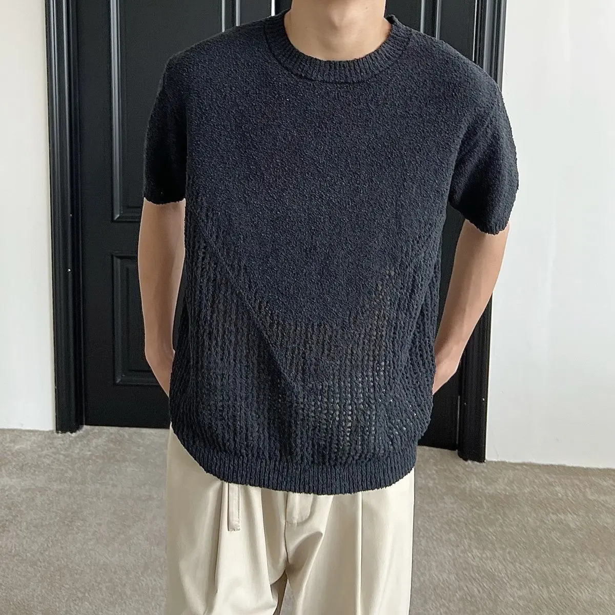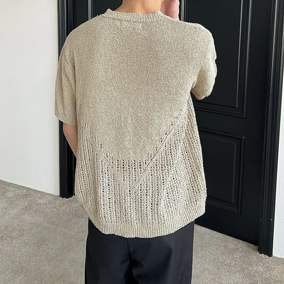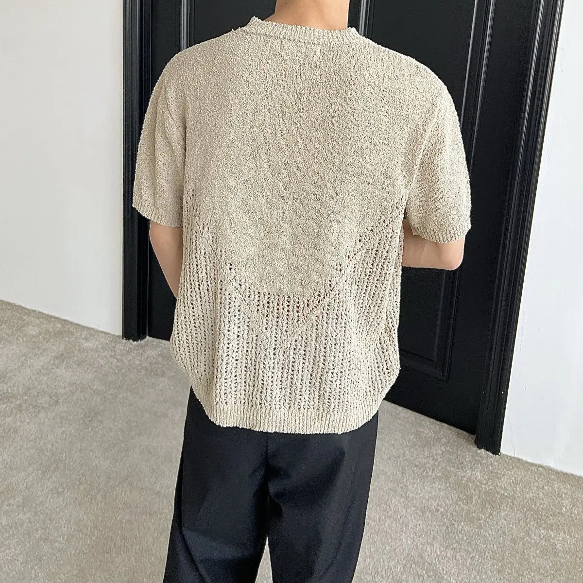 Hollow out short sleeved sweater for men and women, spring and summer new style loose and versatile knitted cardigan top