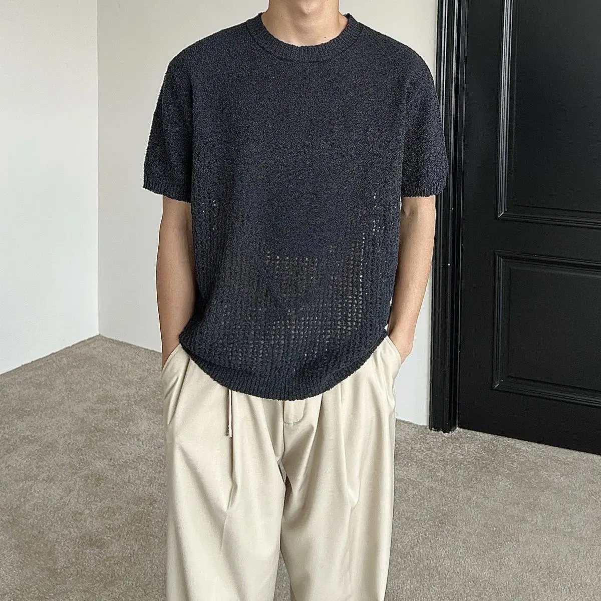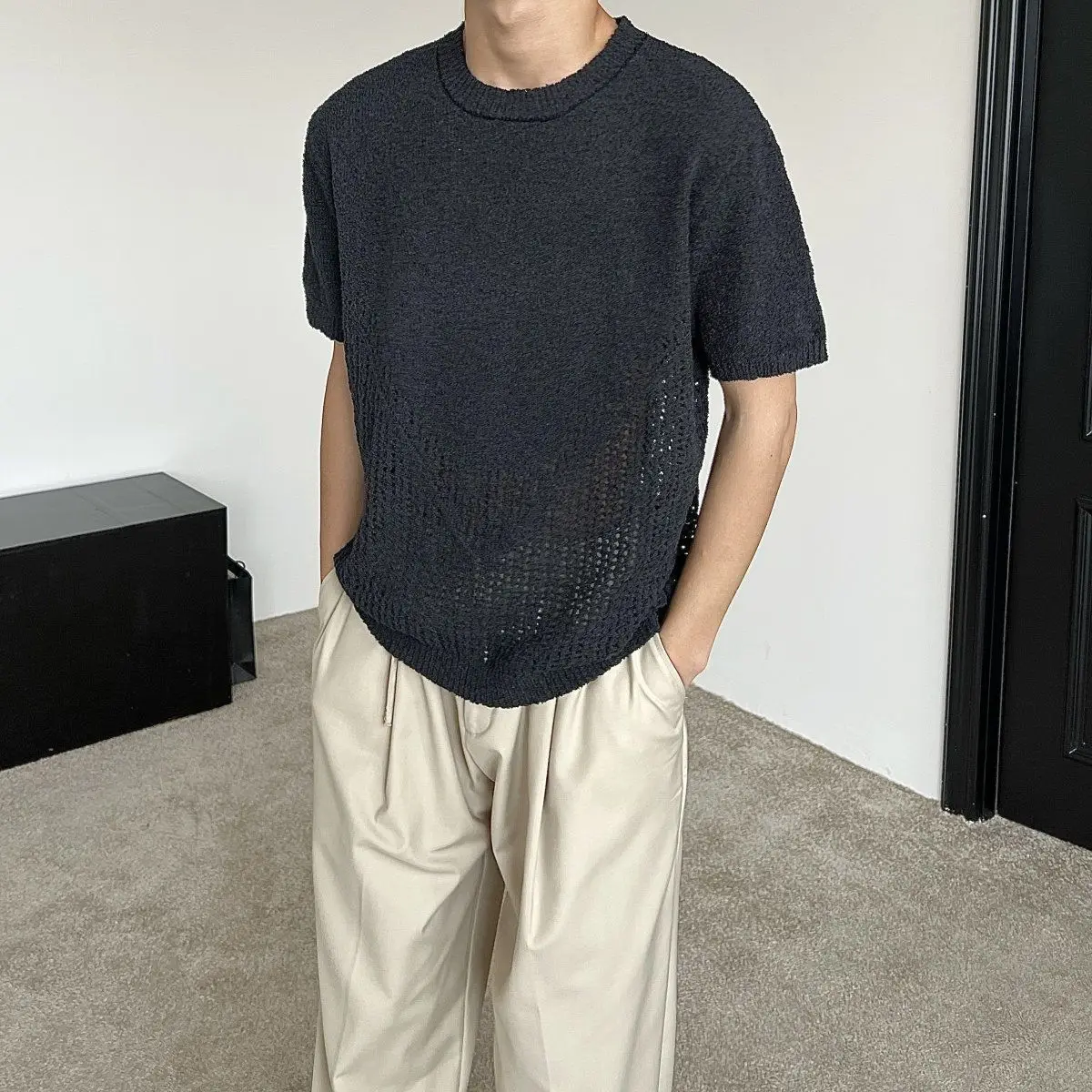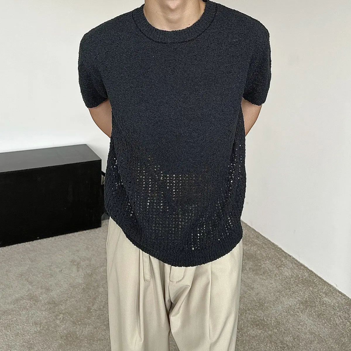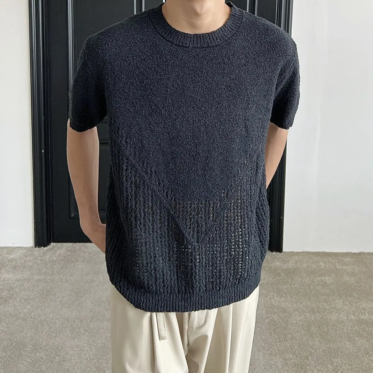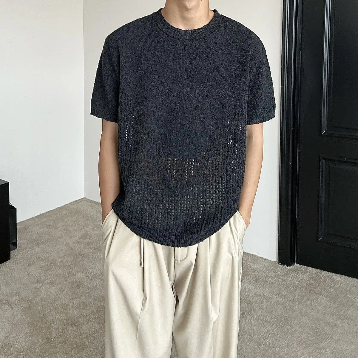 Hollow out short sleeved sweater for men and women, spring and summer new style loose and versatile knitted cardigan top