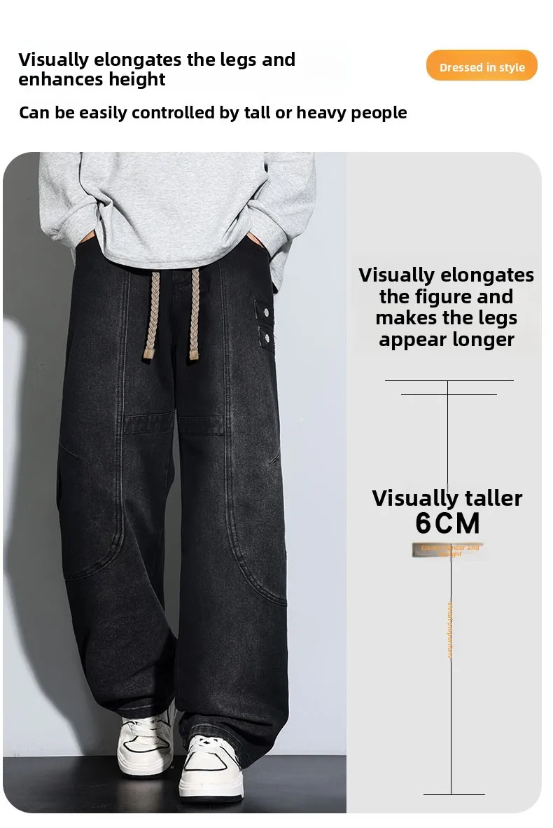 Jeans for Men Men's Casual Trousers Versatile Spring Autumn Large-sized Long Pants Fashionable Loose Straight-leg Wide-leg Pants