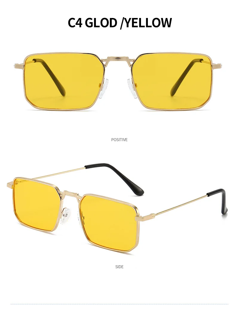 Men Brand Square Driving Sunglasses Metal Narrow Frame Luxury Design Sun Glasses Women Anti UV400 Vintage Driving Sunglasses