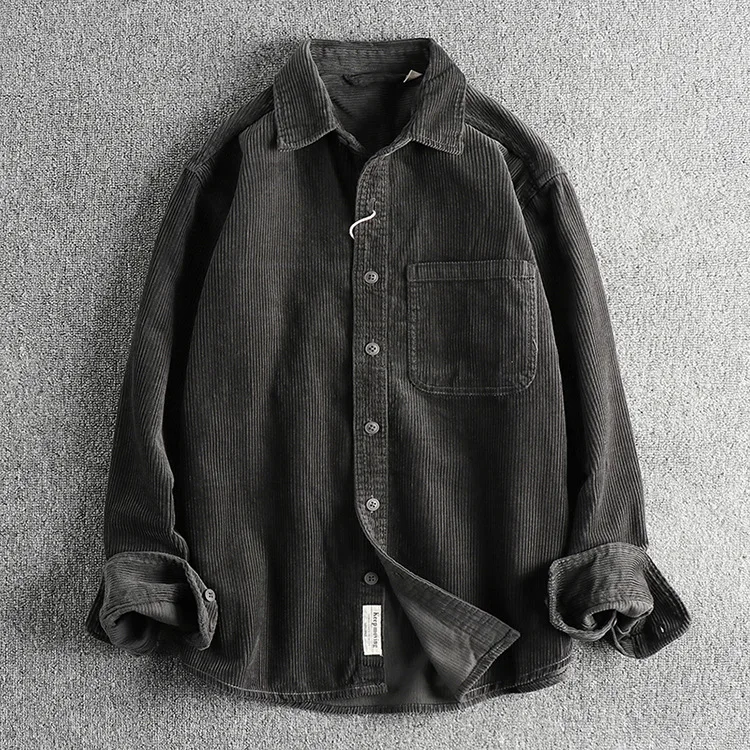 Men Loose Shirt Coat Long Sleeve Single Breasted Casual Shirts Pocket Spliced Turn Down Collar Blouses Cardigan Solid Autumn