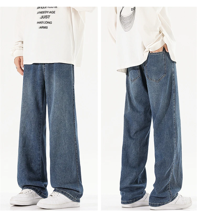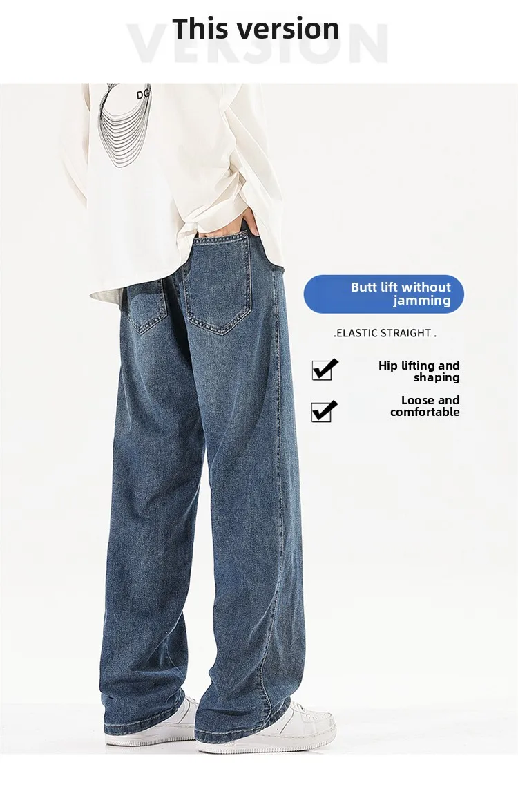Men's Jeans Summer Thin Style Trendy Fashion 2025 New Boys Casual Versatile Loose Straight Wide-Leg Pants Men's