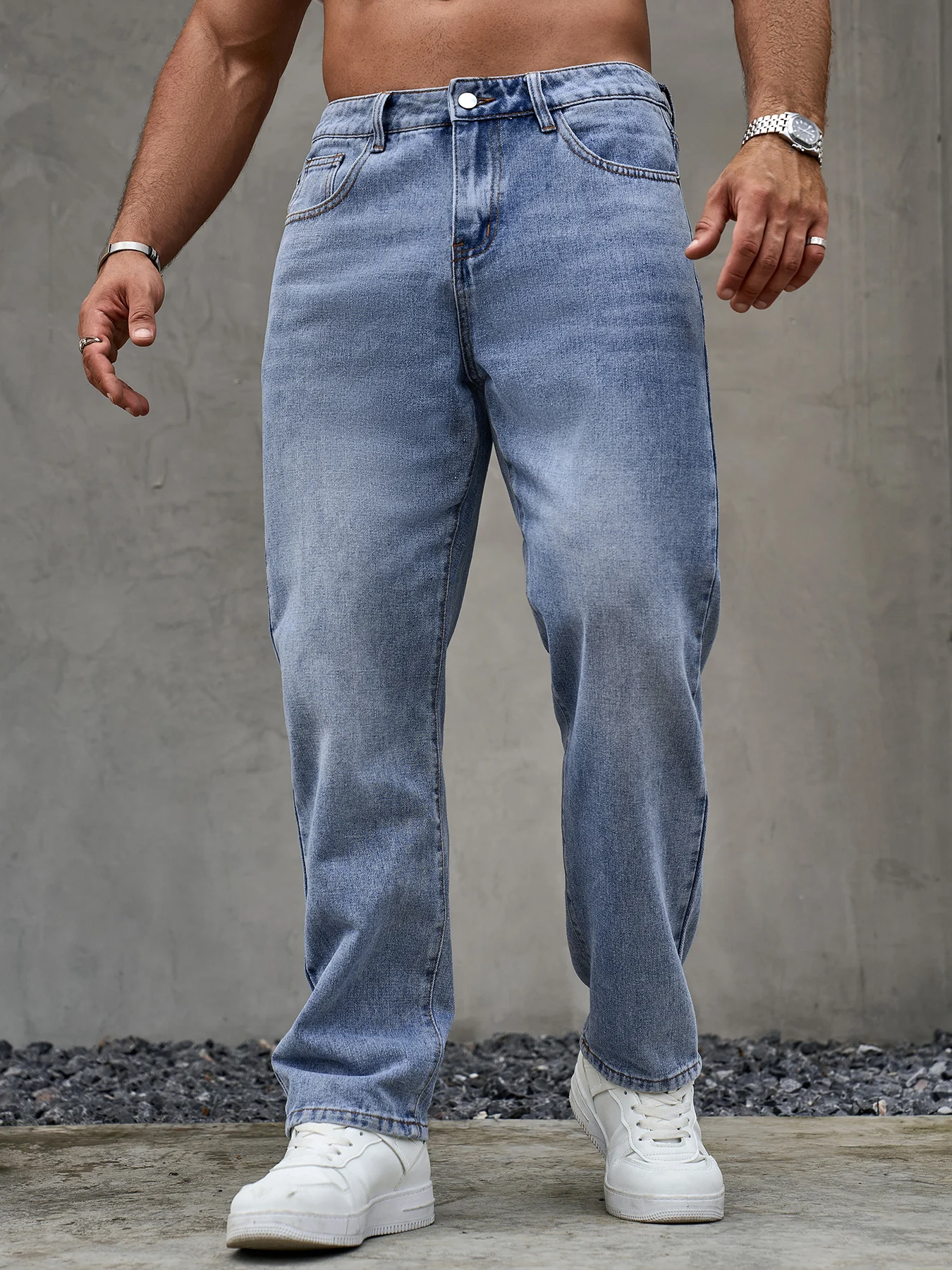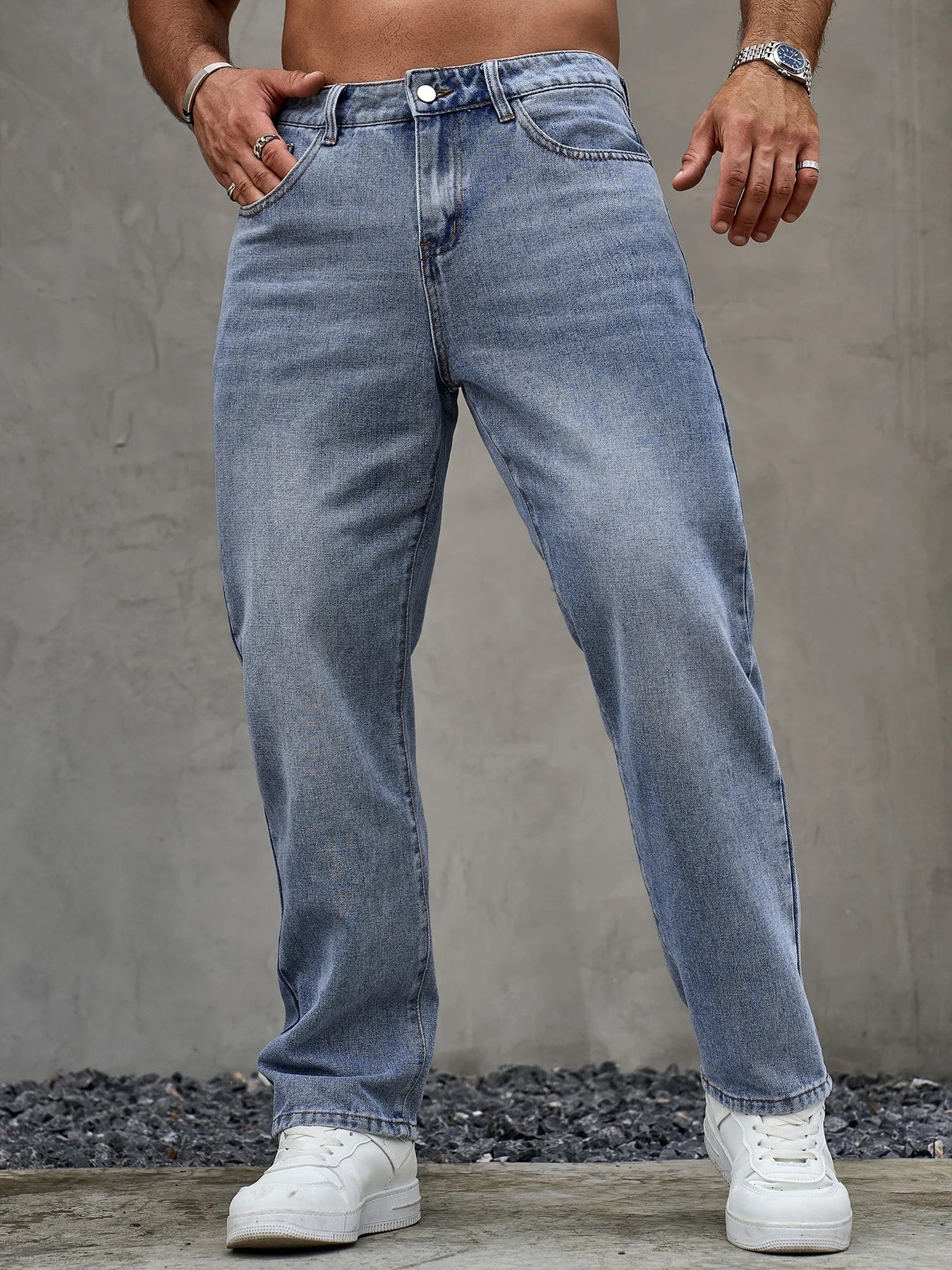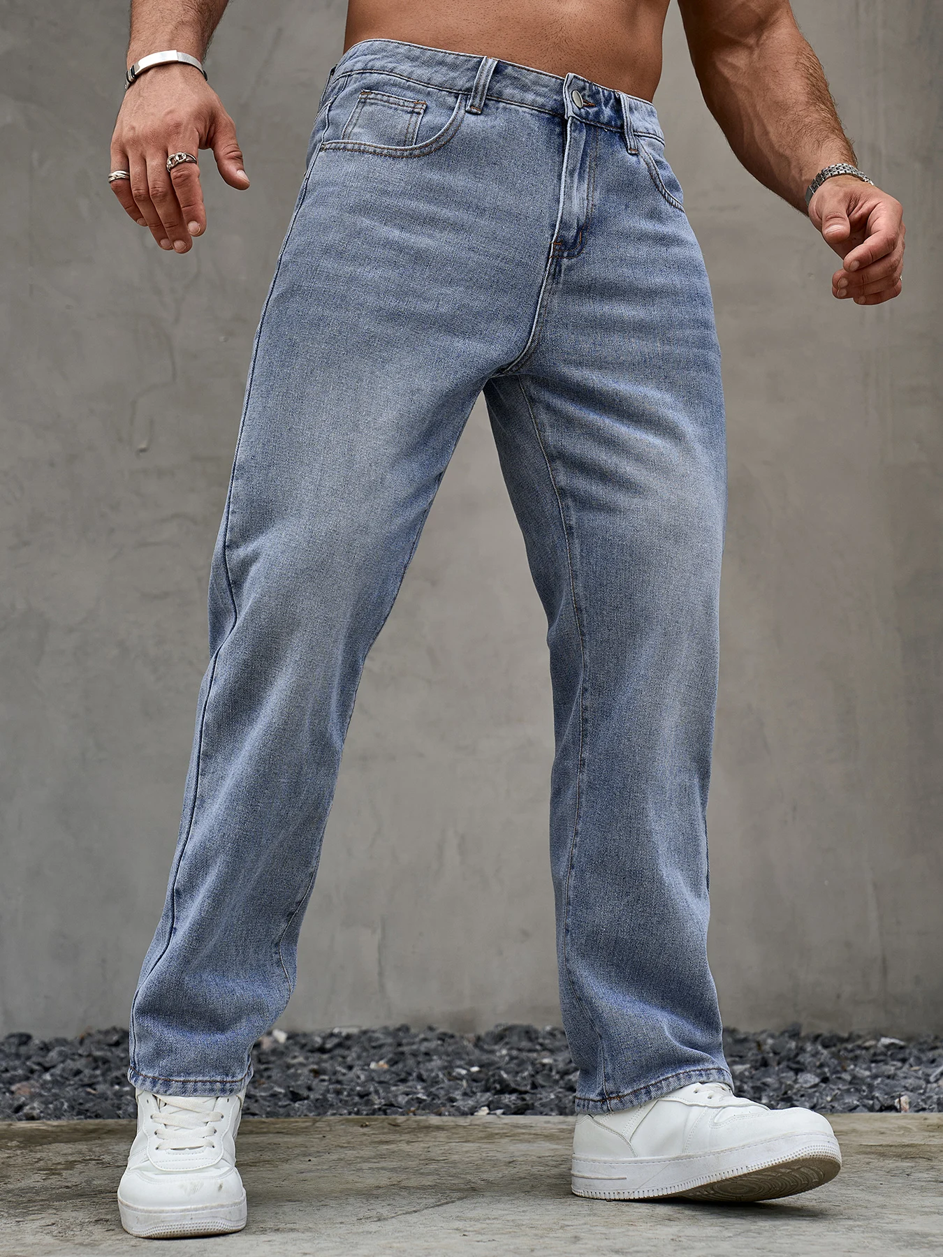 Men's Loose Fit Casual Blue Jeans Basics Versatile Style Straight Leg Denim Trousers Soft and Durable Pants for All Season Wear
