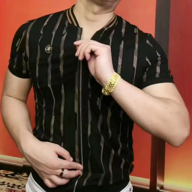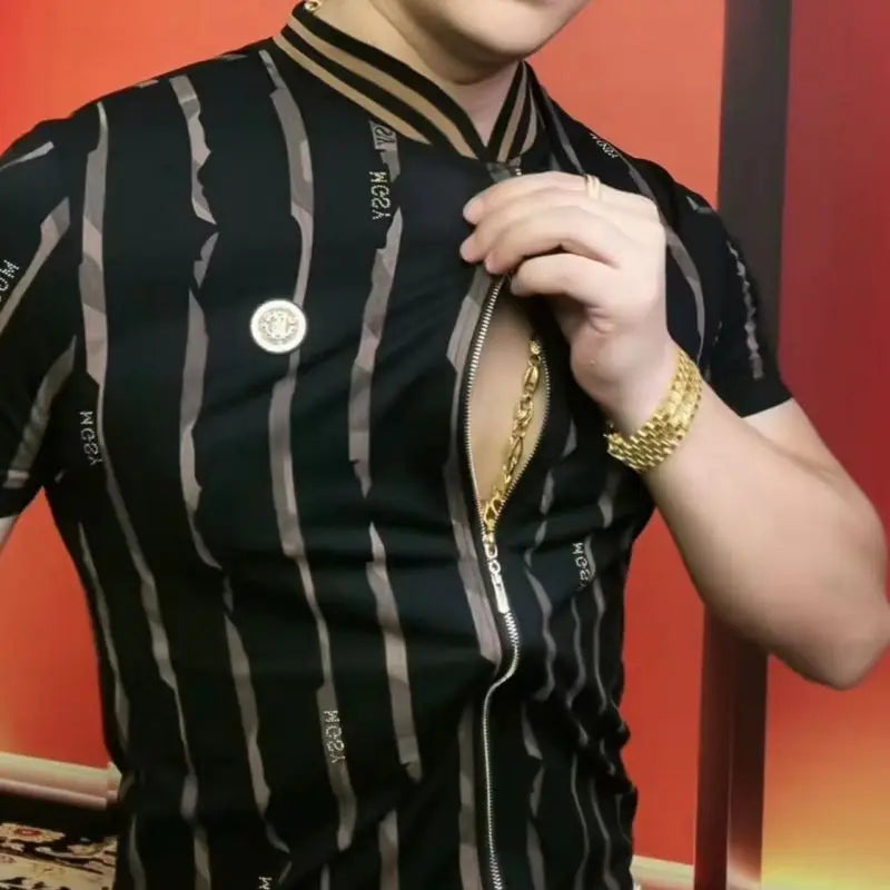 Men's New Summer T-shirt Zipper Short-sleeved Cardigan Sweater Round Neck Fashionable and Handsome Top Thin
