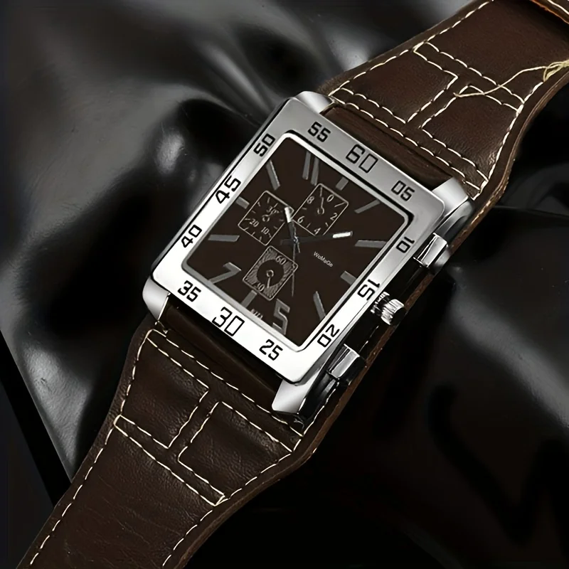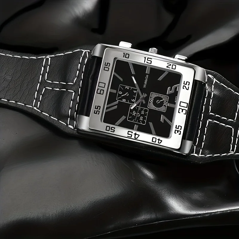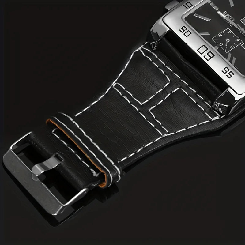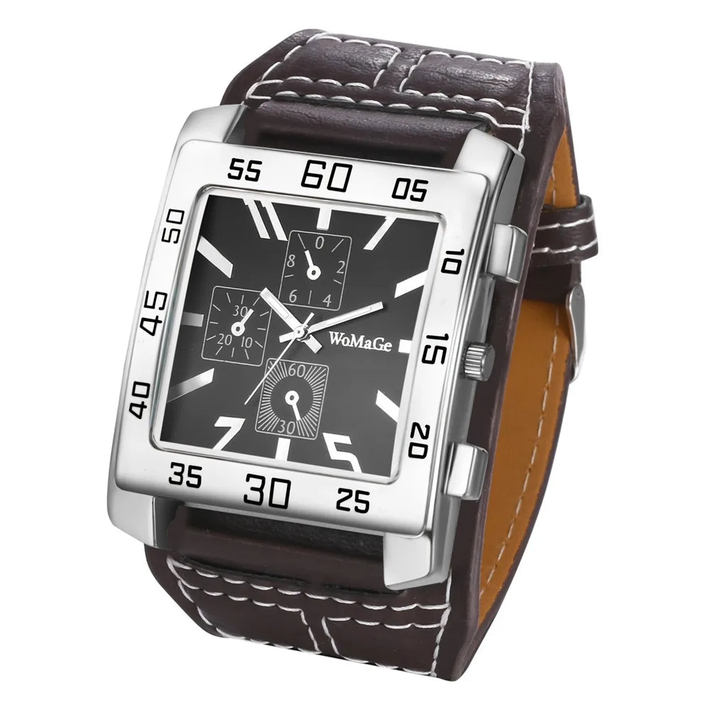 Mens Square Big Size Wristwatch Quartz Leather Strap Watches Masculino Relogio Fashion Elegant Clock Out-door Reloj Hombre saati