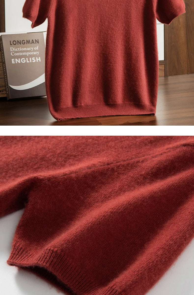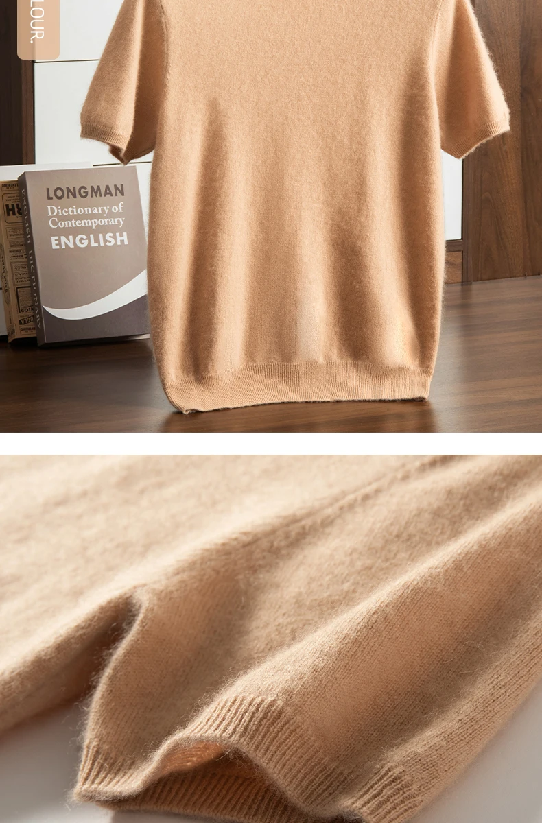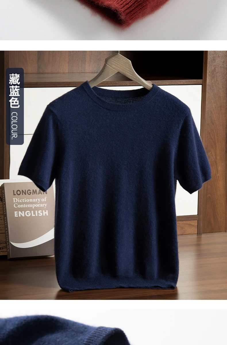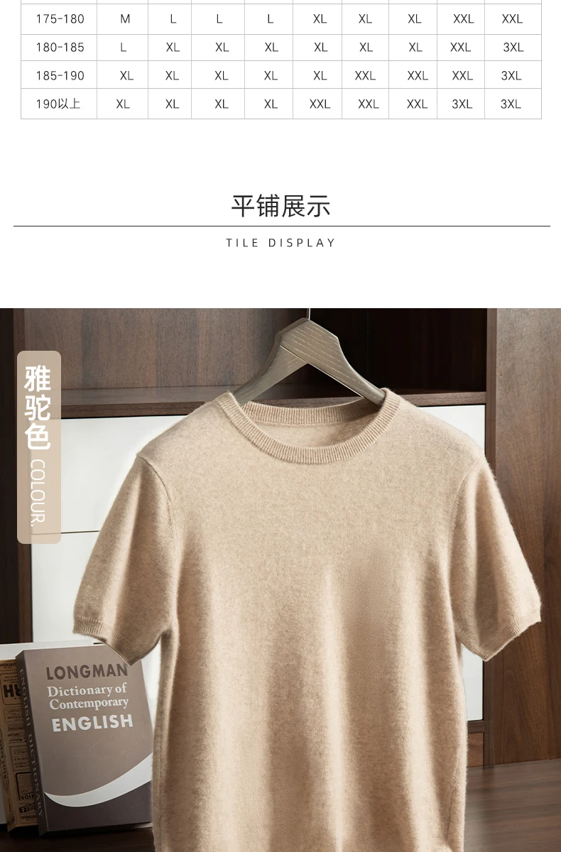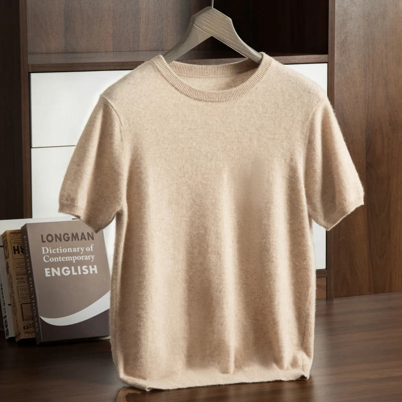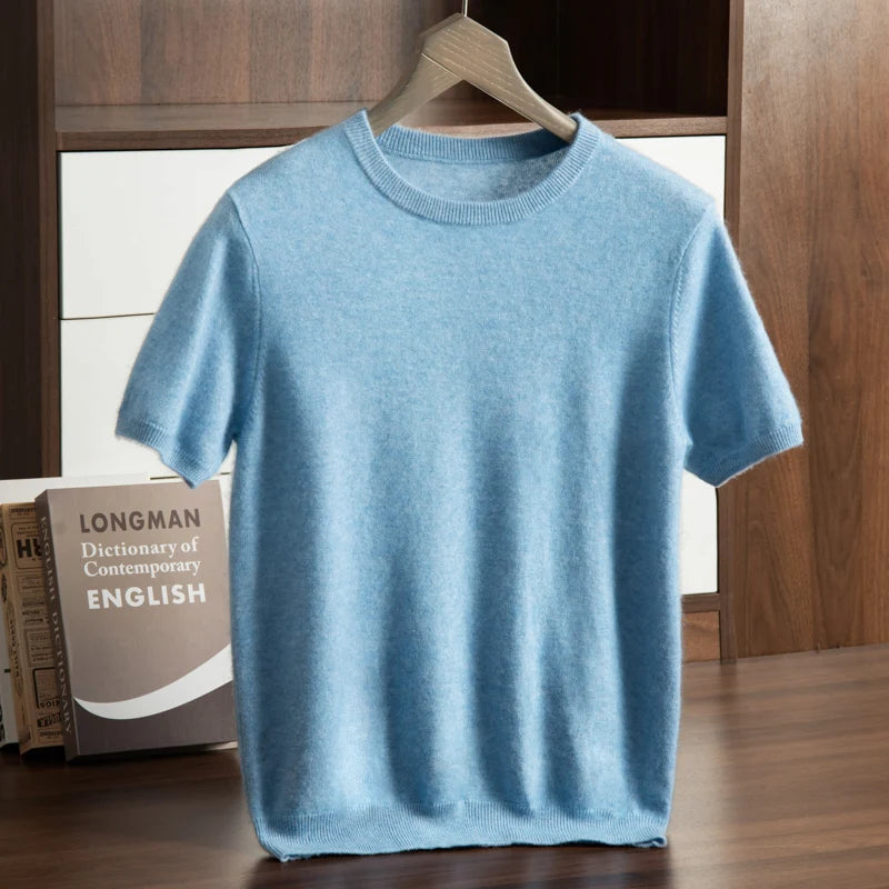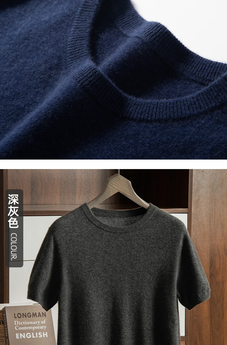 Men's T-shirt spring/Summer New Item 100% Cashmere Short Sleeved Men's Round Neck Knitted Pullover Vest Casual Men's Clothing