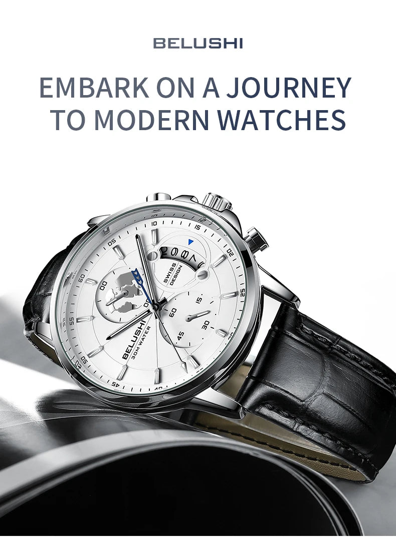 Mens Watches Waterproof Chronograph Sports Watches Men Quartz Wristwatches Brand Luxury Leather Watch For Men Casual Business