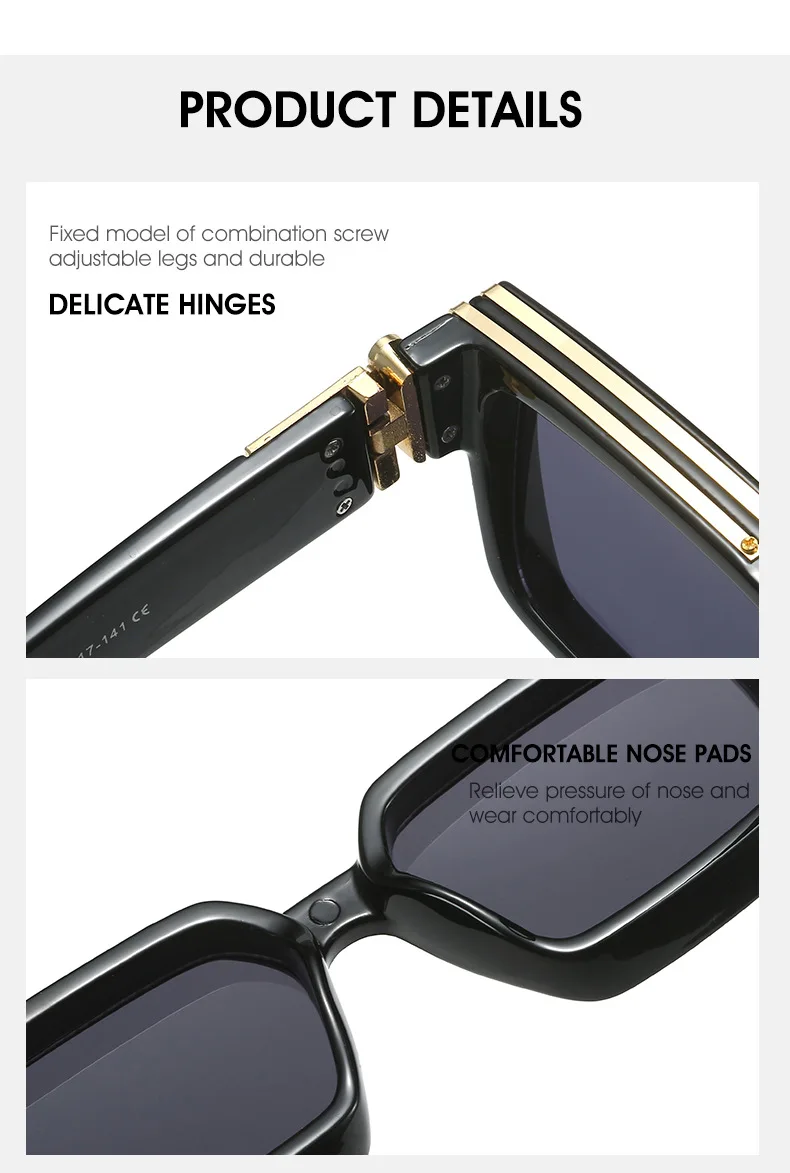 Millionaire Sunglasses For Men Vintage Square Sun Glasses Fashion Retro Sunglasses Women Trendy Luxe Gafas De Sol Hombre Lunette