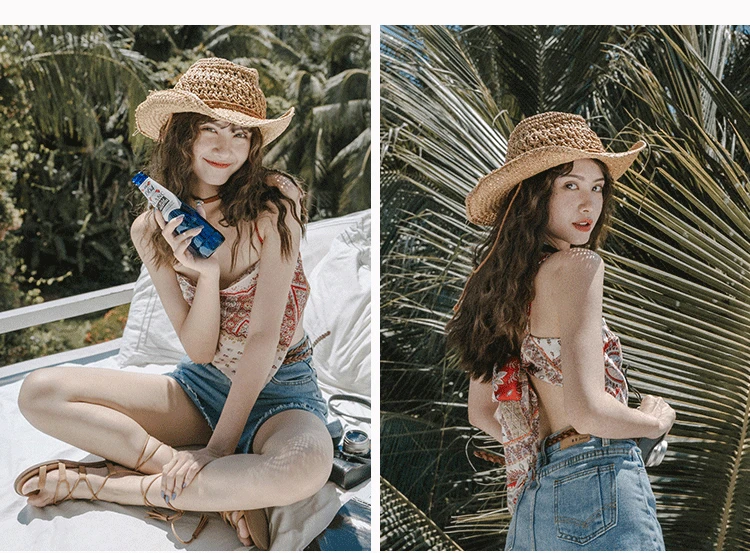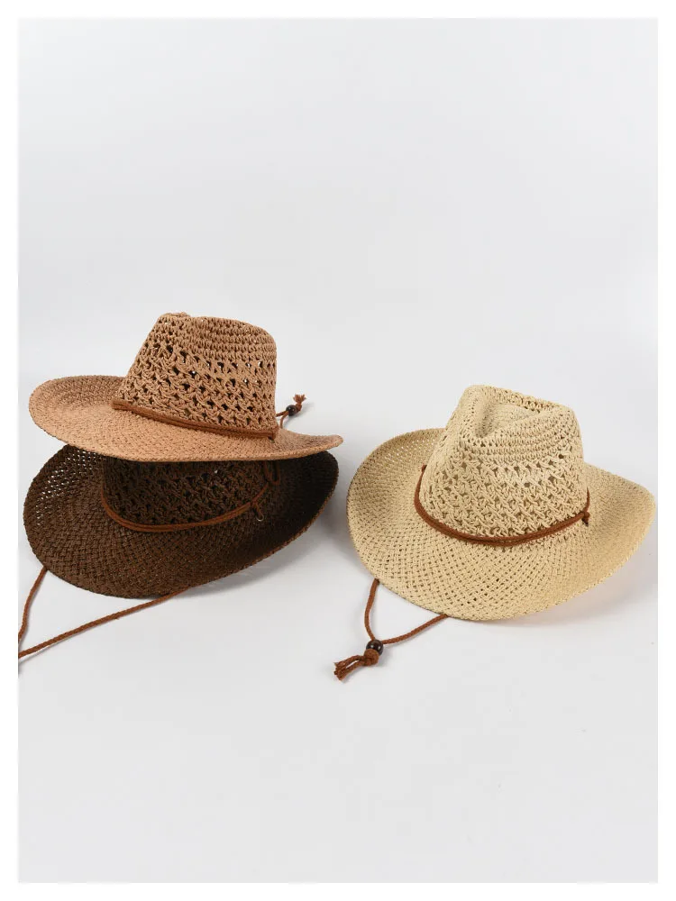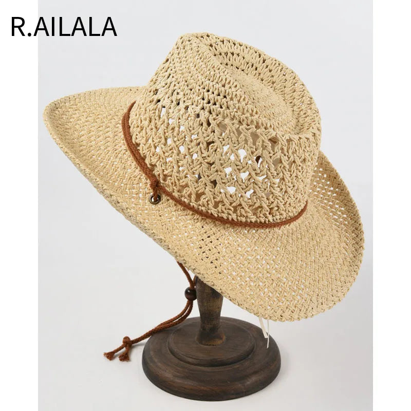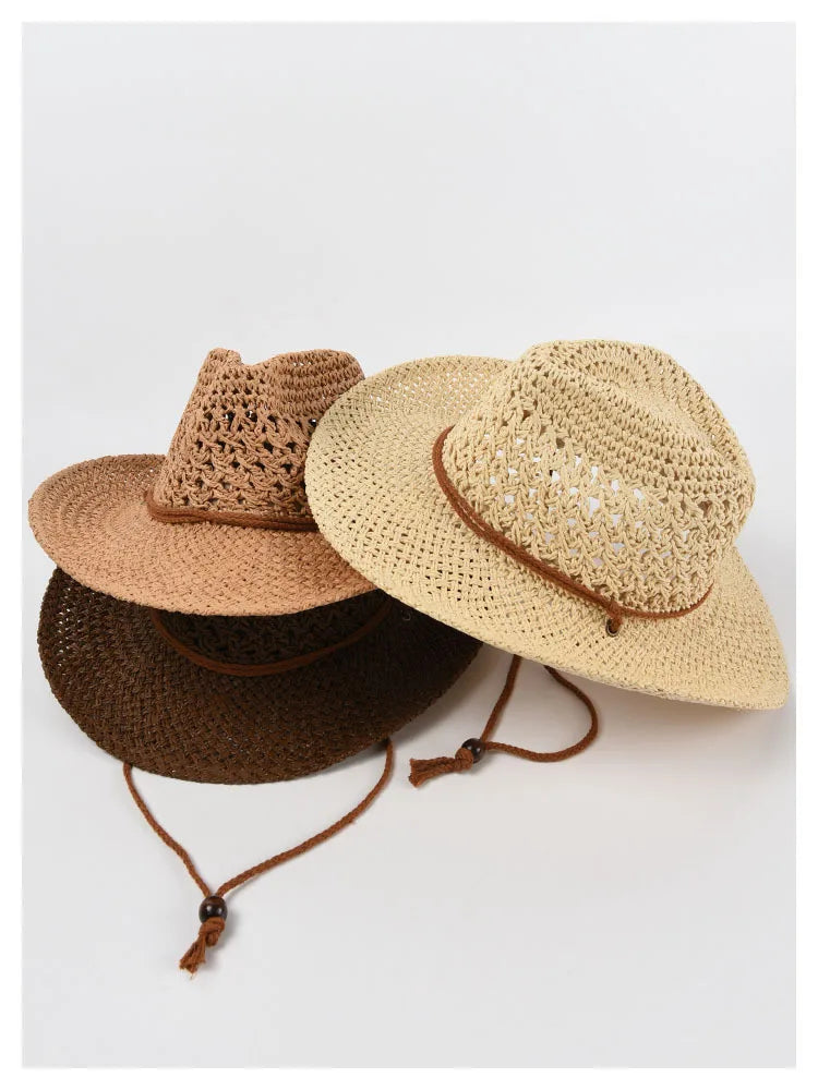 Panama Hat Summer Sun Hats for Women Man Hollow Out Beach Straw Hat for Men UV Protection Cap Chapeau Femme Women's Cowboy Hat