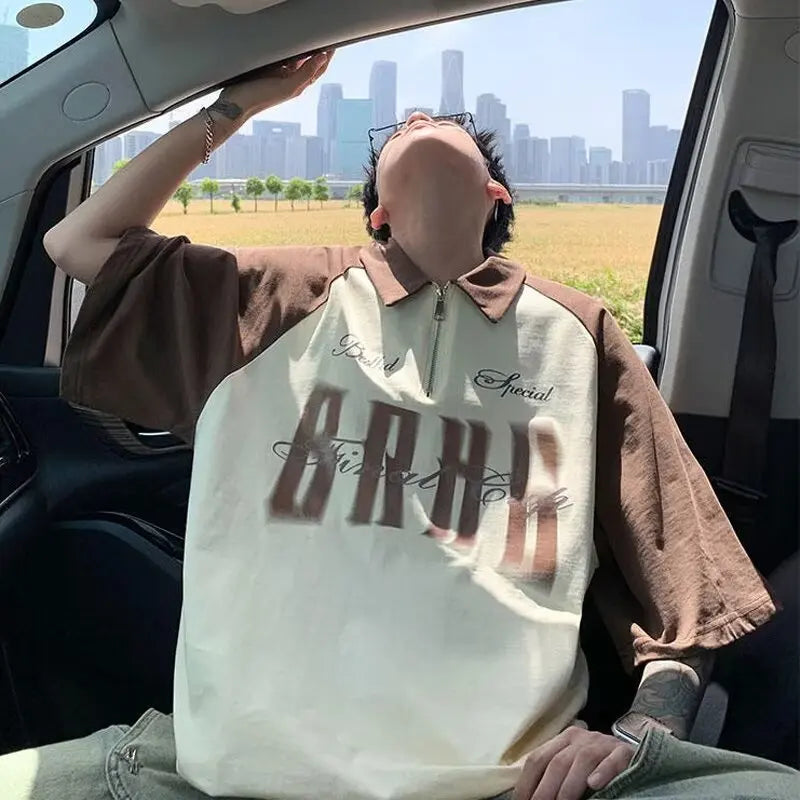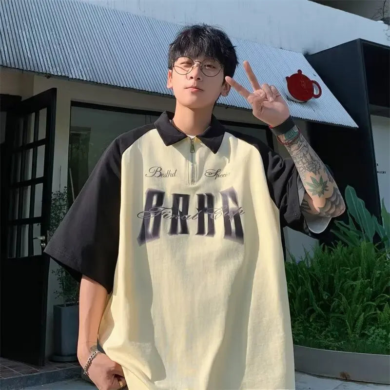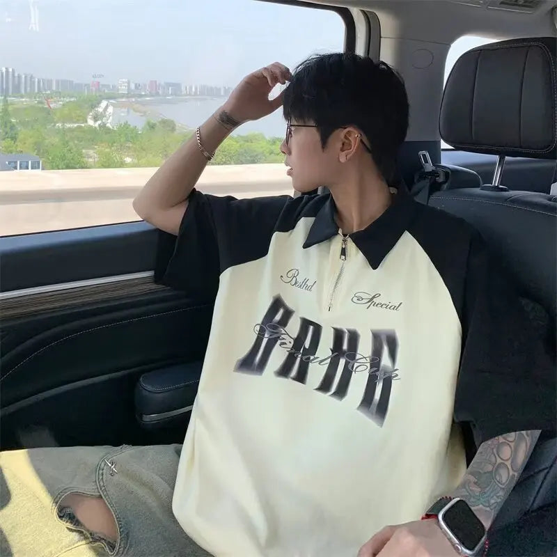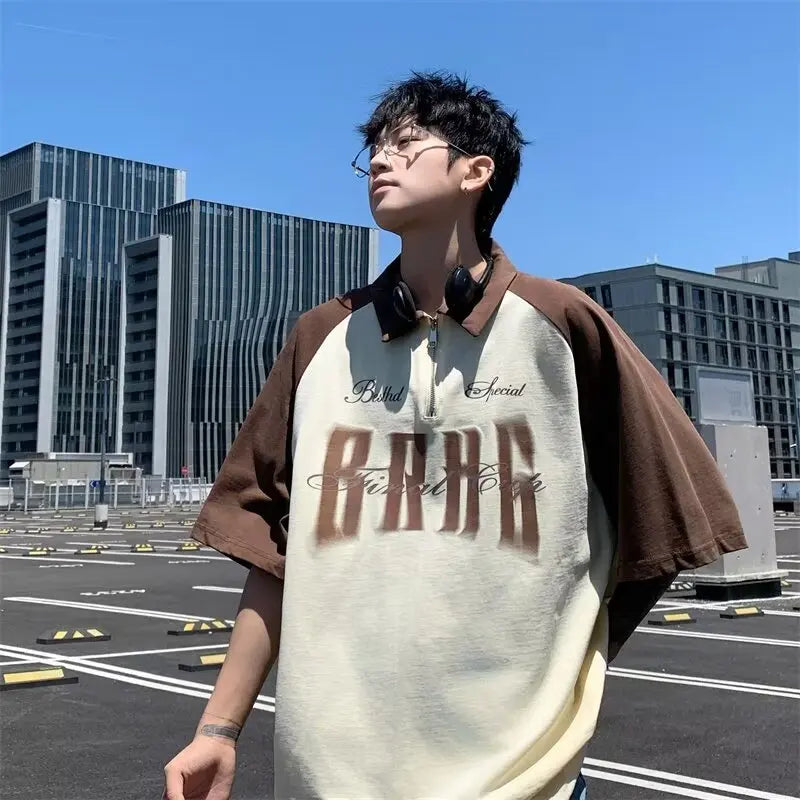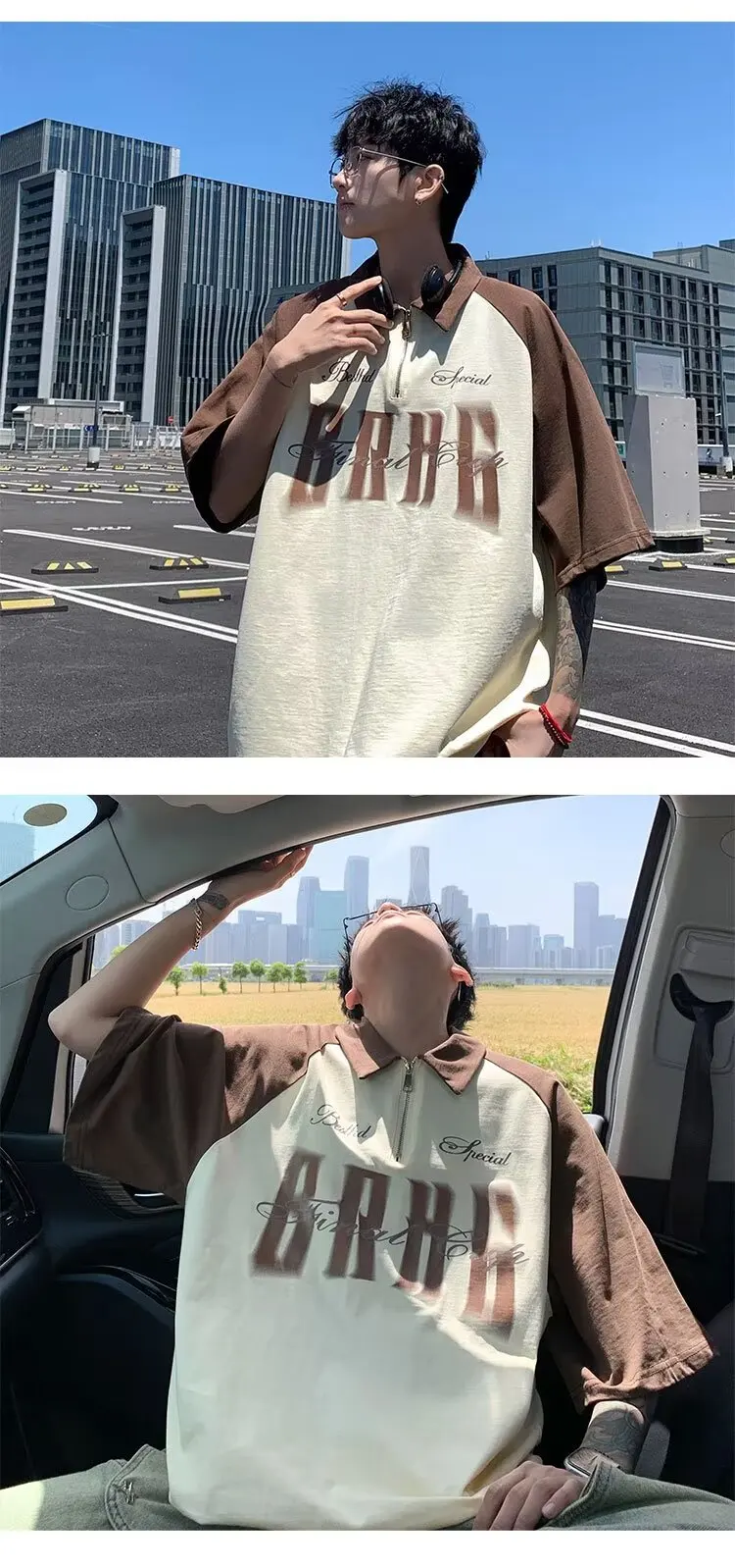 Short Sleeved Polo Shirt For Men Summer American Retro Casual Sportswear Cool And Trendy T-shirt Explosive Street Half Sleeve