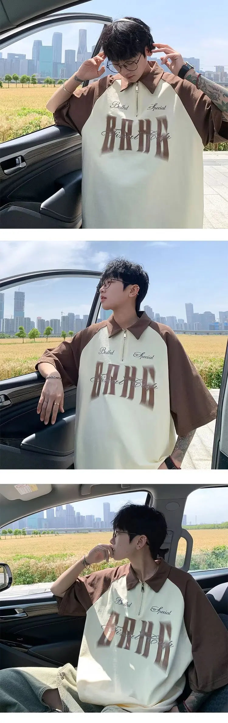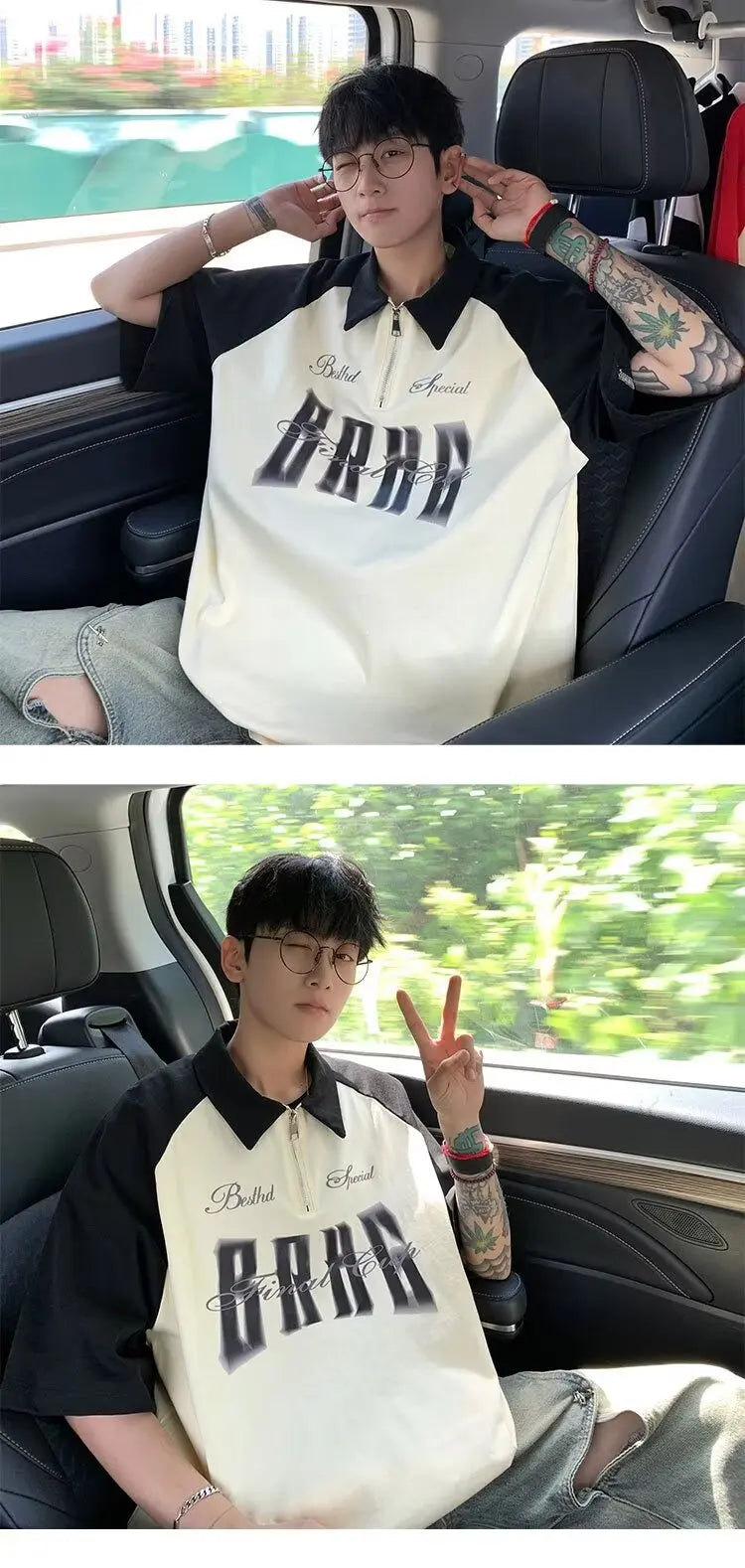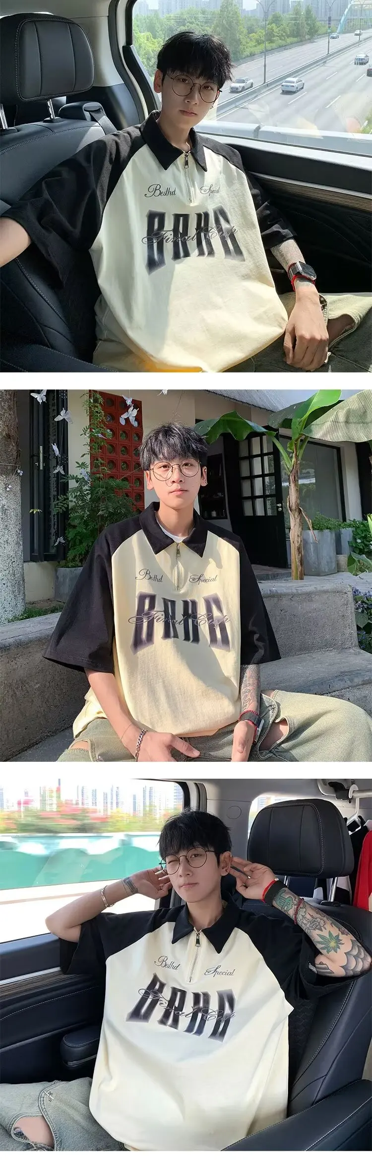 Short Sleeved Polo Shirt For Men Summer American Retro Casual Sportswear Cool And Trendy T-shirt Explosive Street Half Sleeve