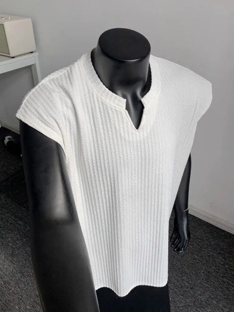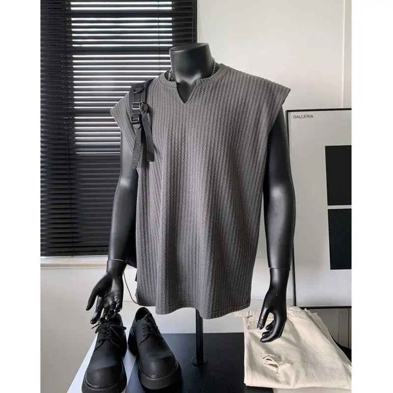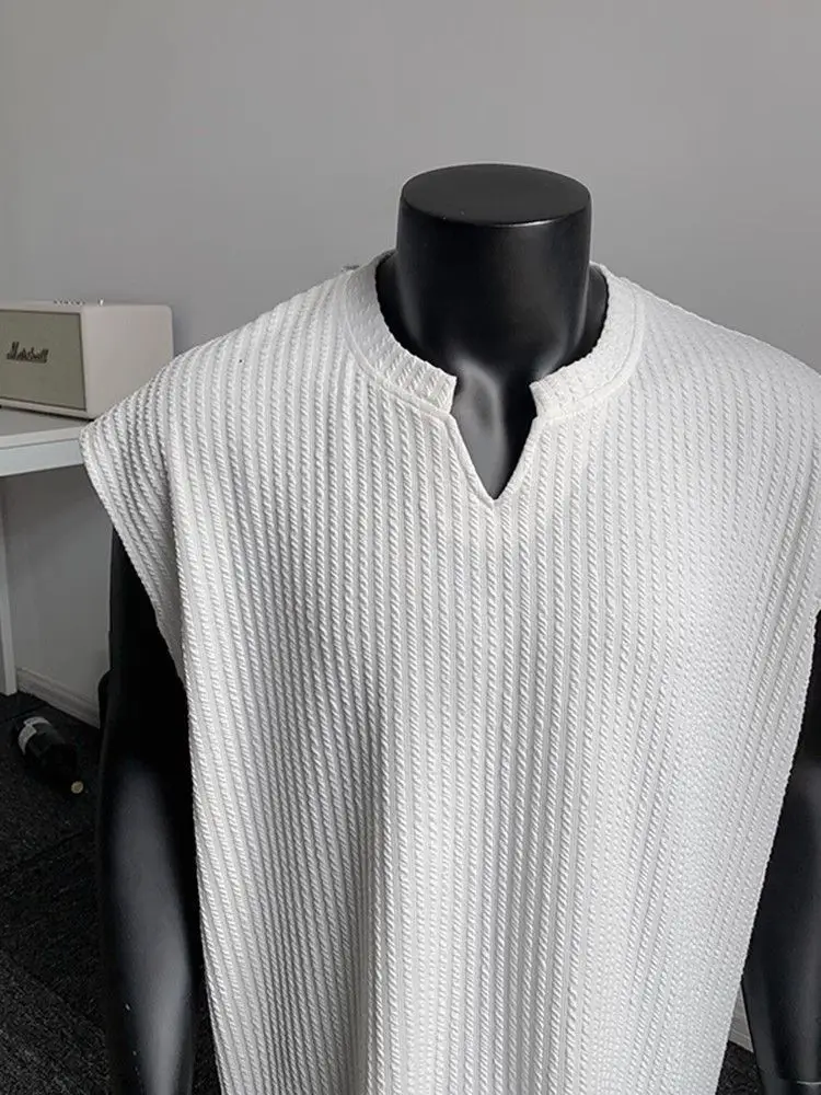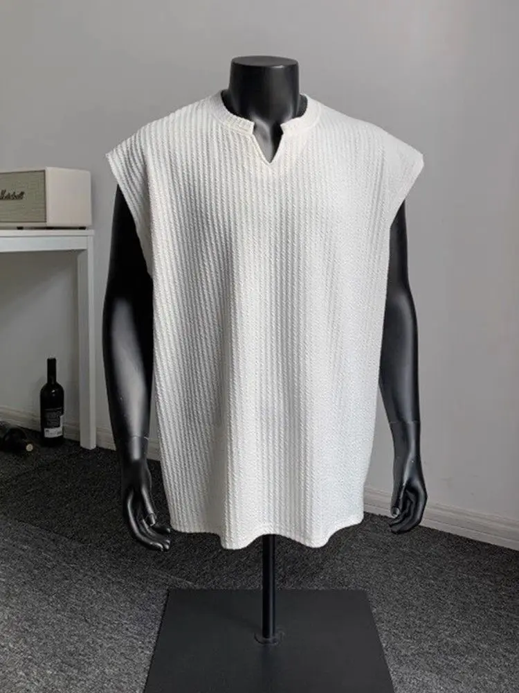 Striped Vest Men's Summer American Sleeveless V-Neck T-Shirt Textured Solid Fitness Sweatshirt