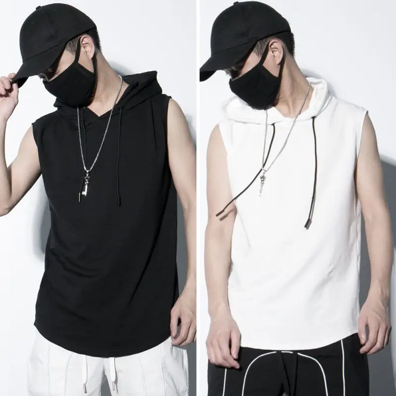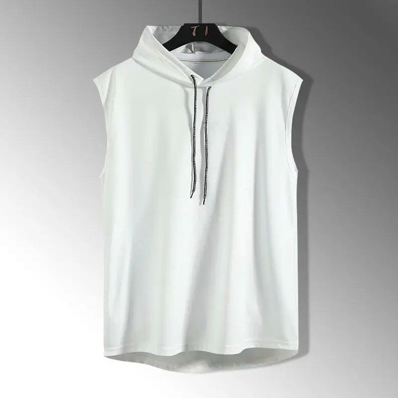 Summer men's sleeveless hooded vest, casual style solid color versatile T-shirt